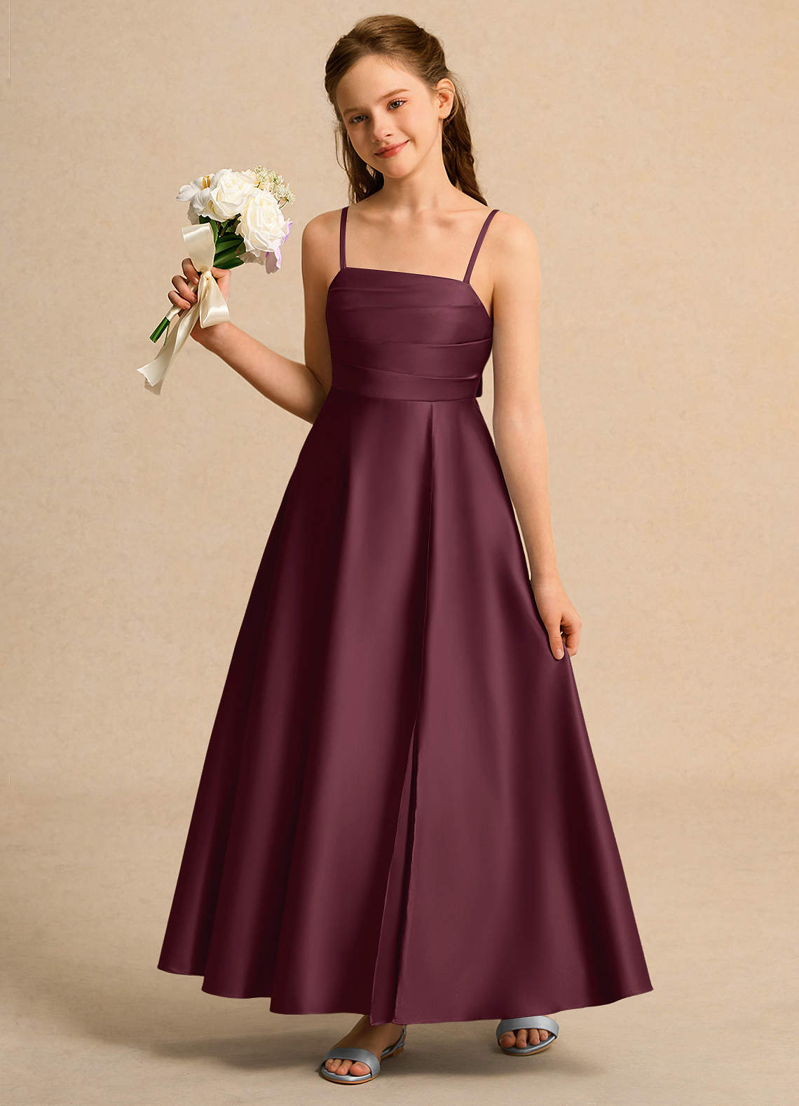 A-Linie Plissee Matte Satin Kleid Cabernetrot