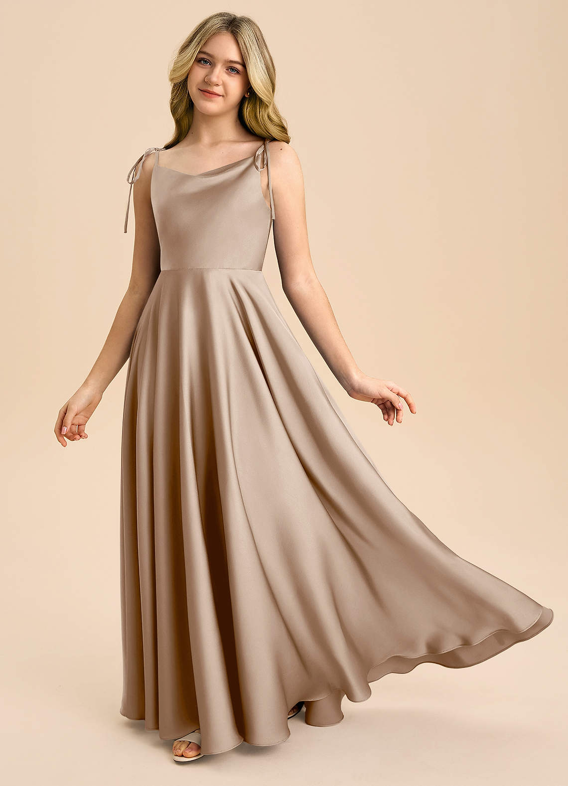 A-Linie Schleifen Stretch-Satin Kleid Taupe