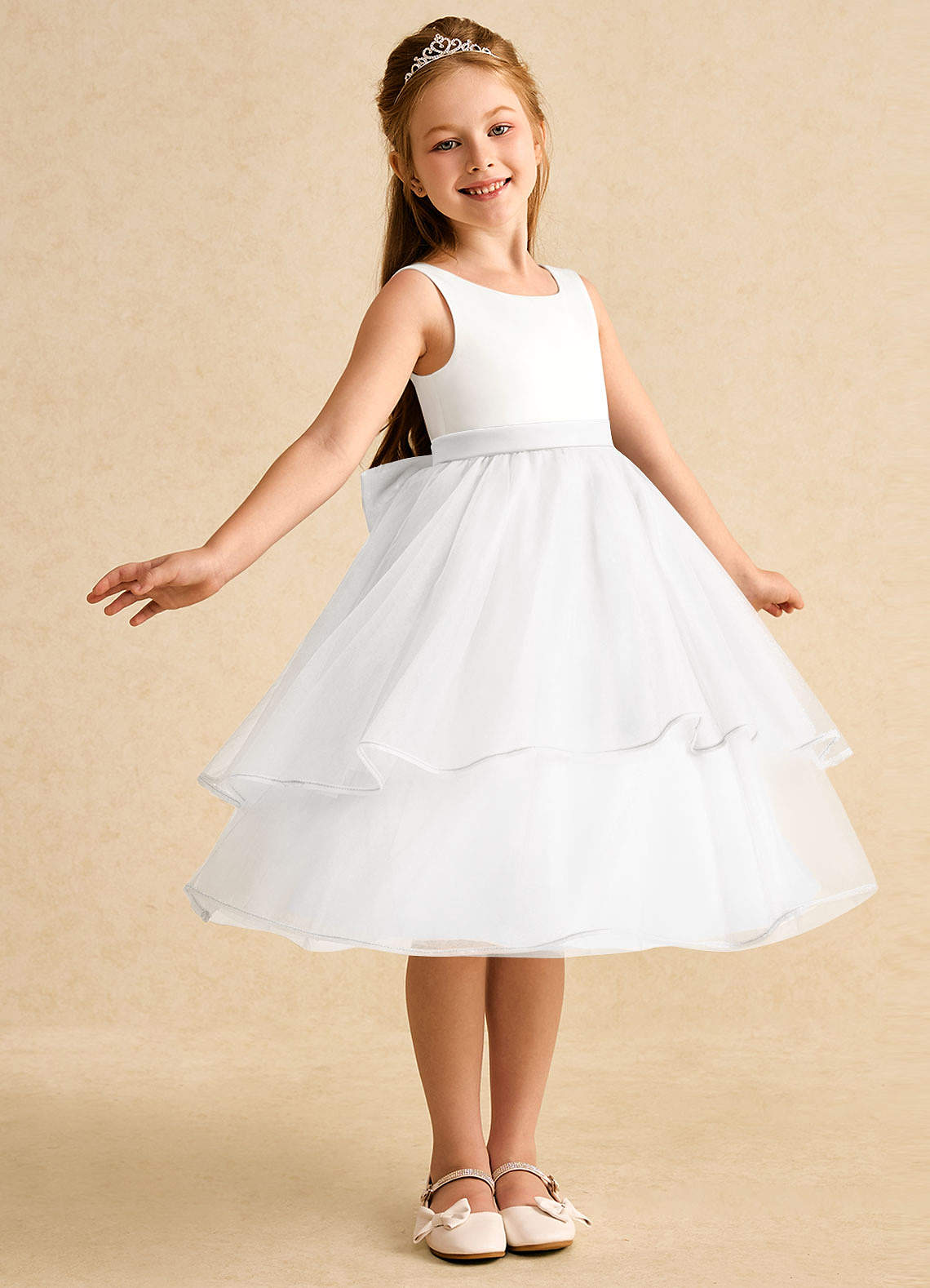 A-Linie Schleifen Tüll Kleid Elfenbein Weiß