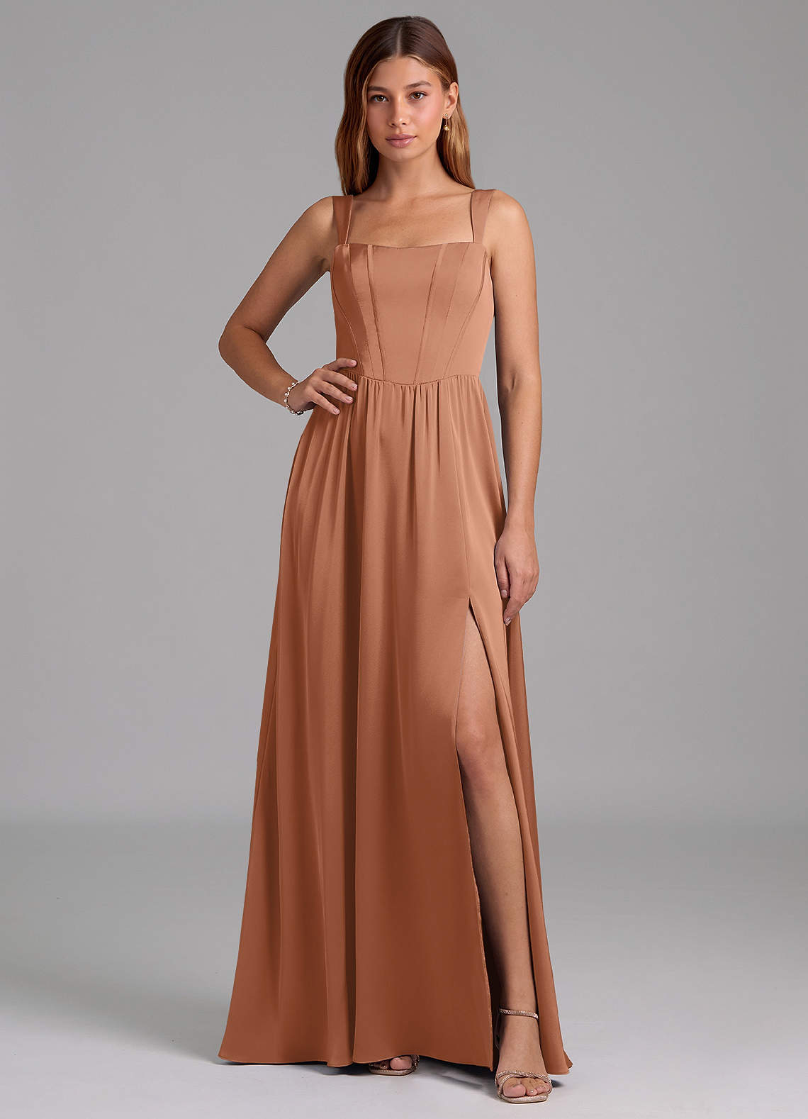 A-Linie Seitliche Cut-Outs Stretch-Satin Kleid Bronzer