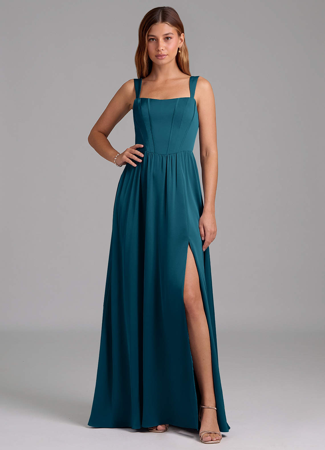 A-Linie Seitliche Cut-Outs Stretch-Satin Kleid Tintenblau
