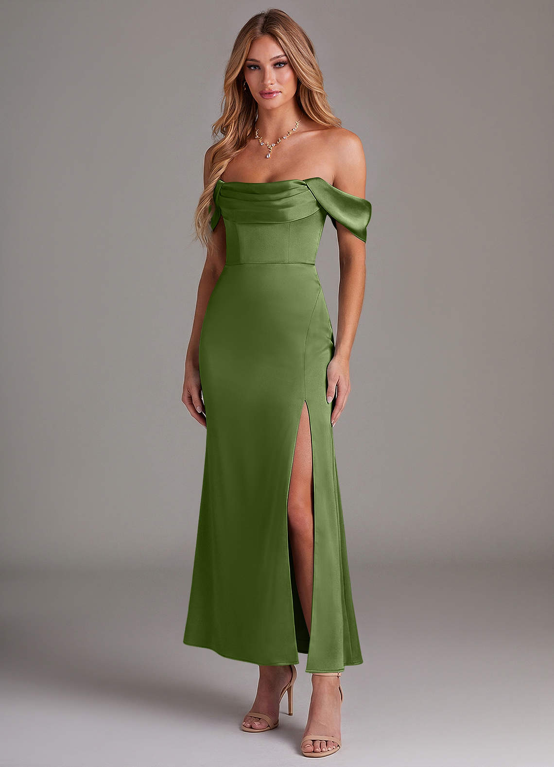 Meerjungfrau-Linie Schulterfrei Stretch-Satin Kleid Wacholder