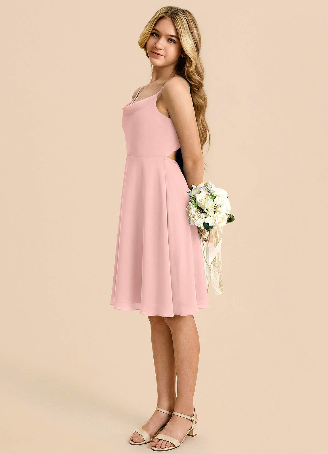 A-Linie Schleifen Chiffon Kleid Rosettenrosa