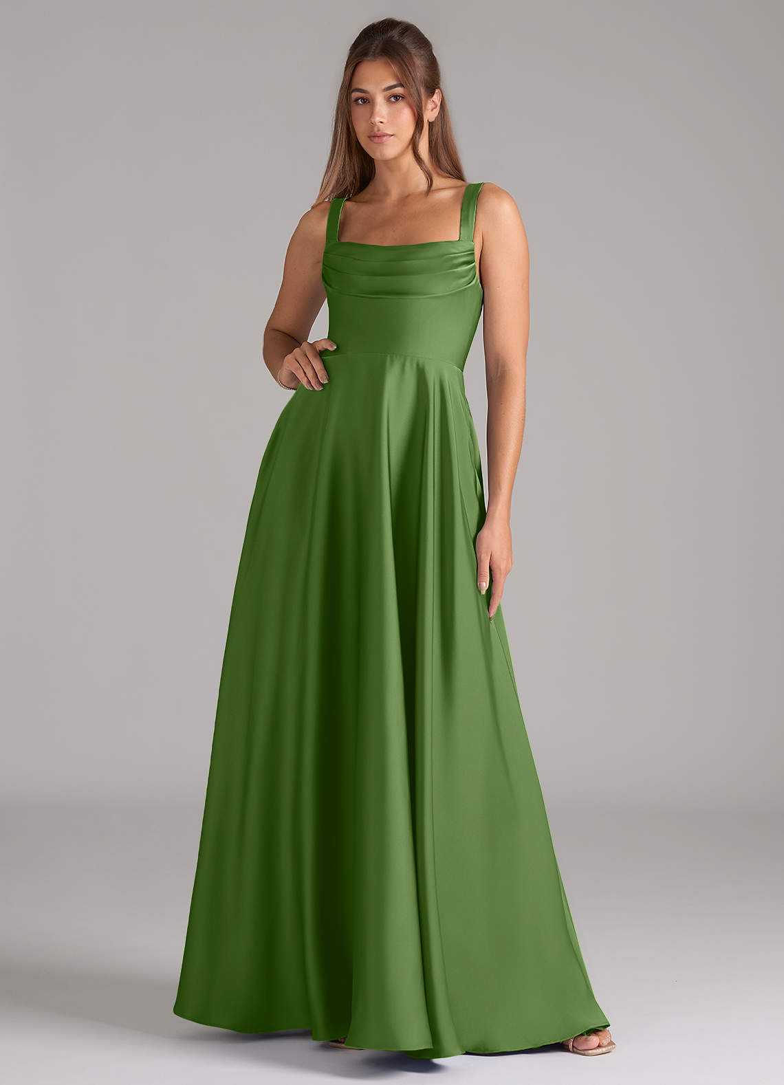 A-Linie Plissee Stretch-Satin Kleid Basilikum