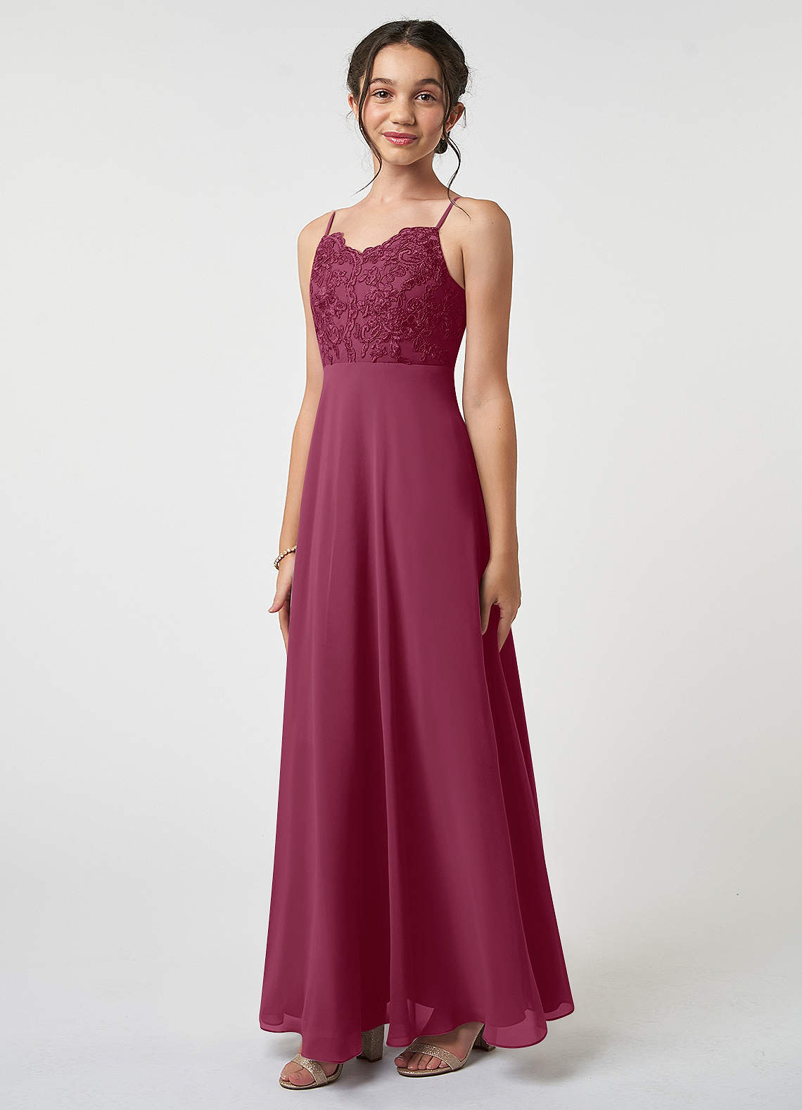 A-Linie Spitze Chiffon Kleid Maulbeerrot