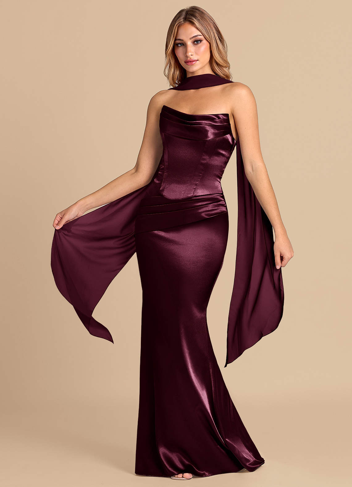 Wandelbar Meerjungfrau-Linie Korsett Metallischer Satin Kleid Cabernetrot