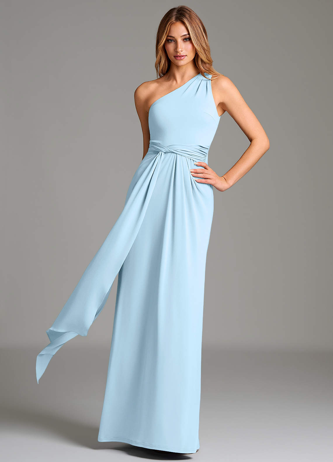 A-Linie One-Shoulder Premium Stretch Jersey Kleid Himmelblau