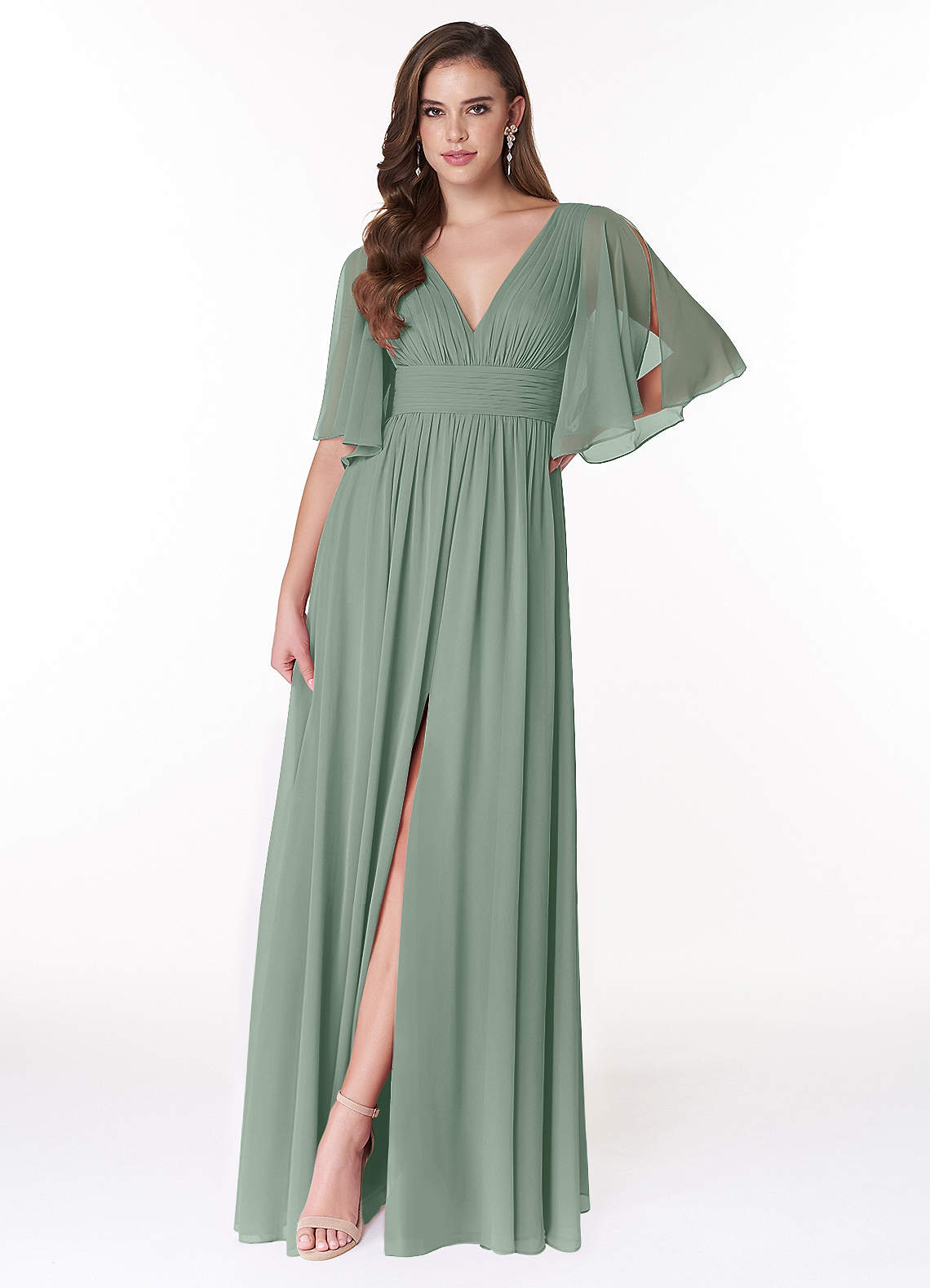 A-Linie Gestreift Chiffon Kleid Silberner Salbei