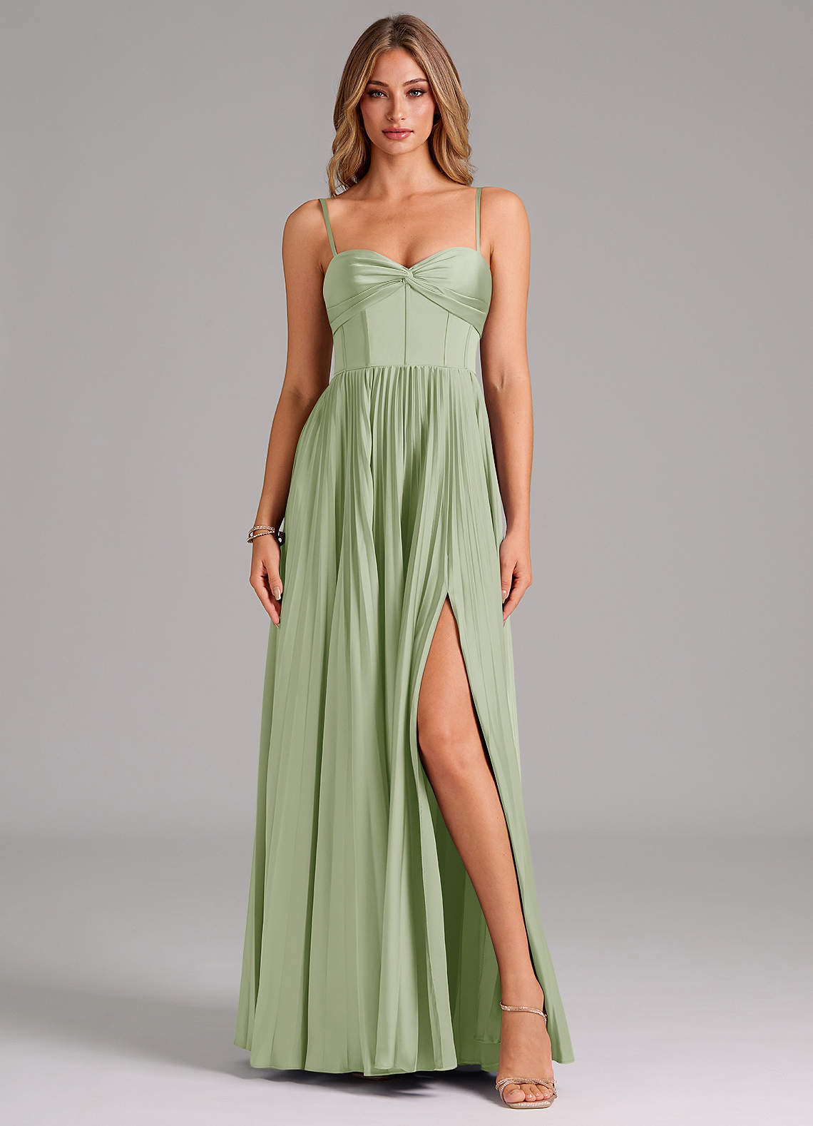 A-Linie Herzausschnitt Stretch-Satin Kleid Staubiger Salbeigrün