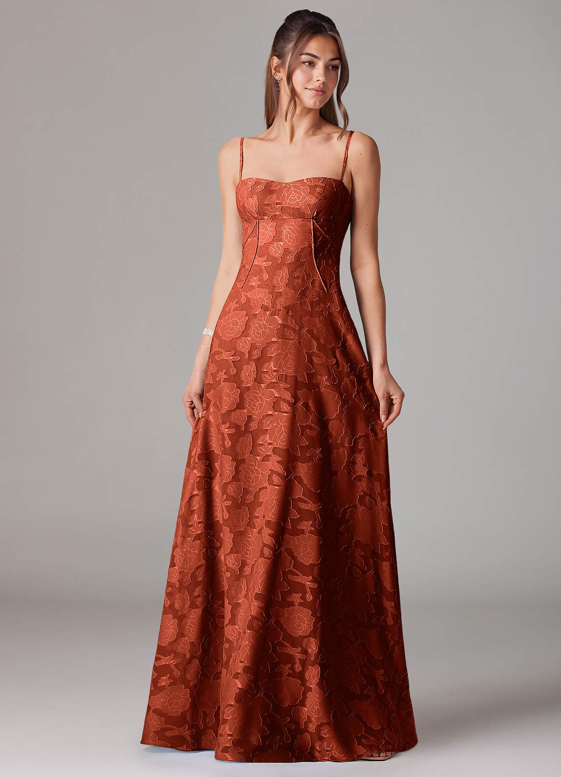 A-Linie Herzausschnitt Blumen-Burnout Kleid Rotbraun