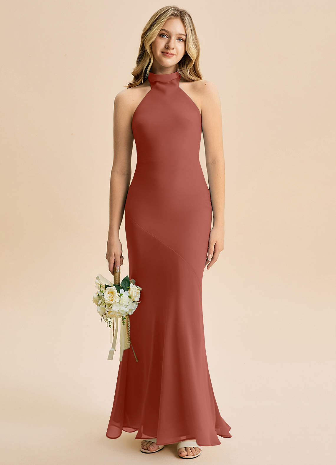 Meerjungfrau-Linie Hoher Kragen Chiffon Kleid Rotbraun