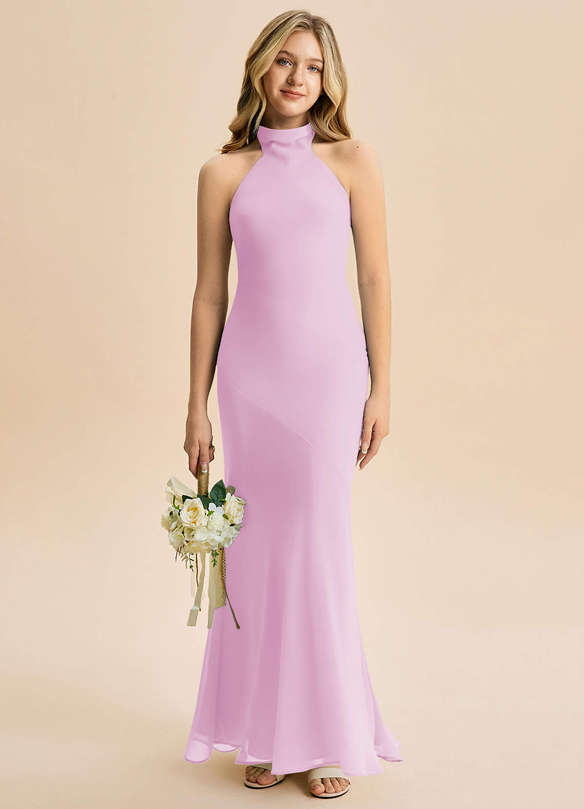 Meerjungfrau-Linie Hoher Kragen Chiffon Kleid Bonbonrosa