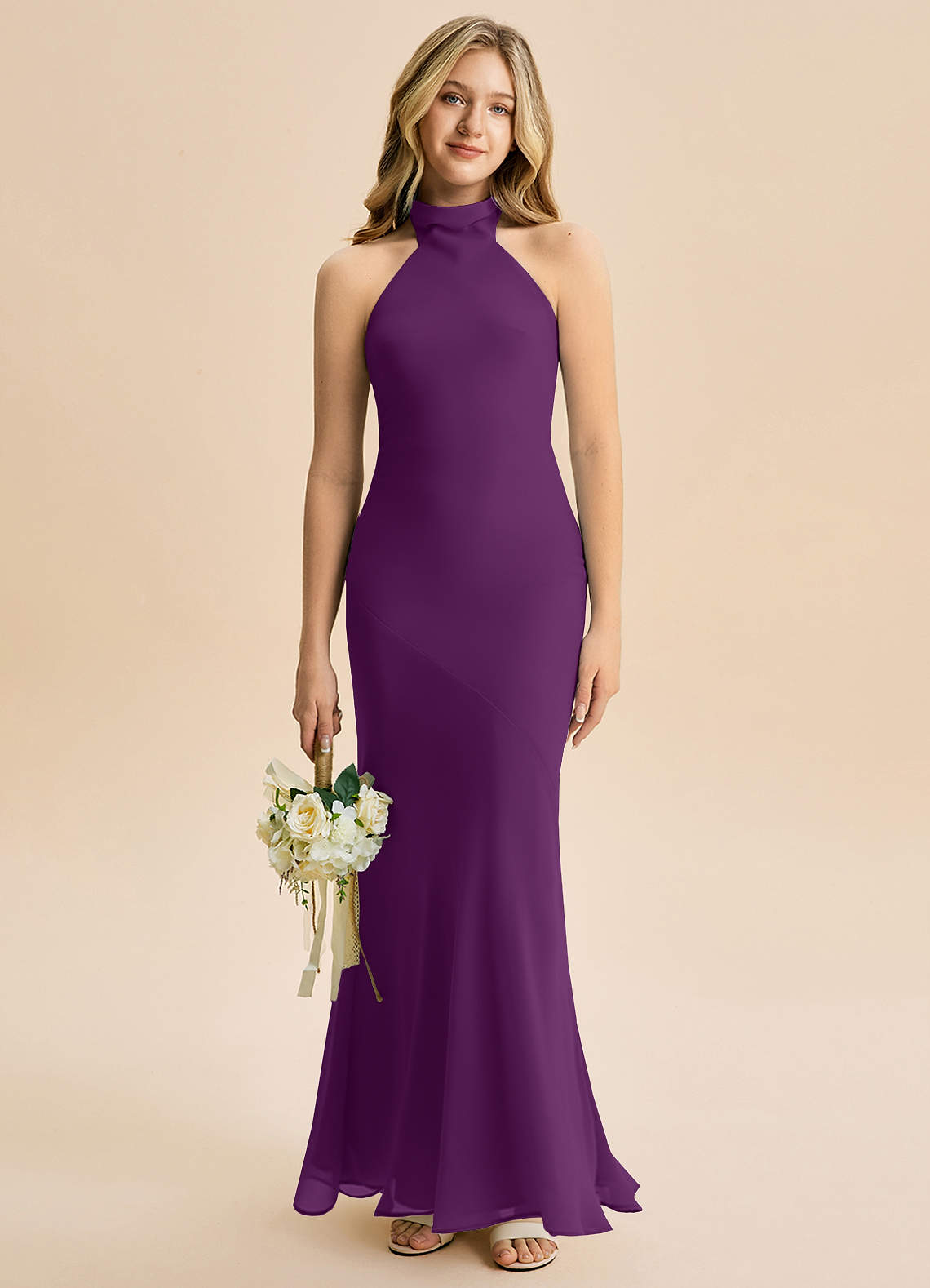 Meerjungfrau-Linie Hoher Kragen Chiffon Kleid Traube