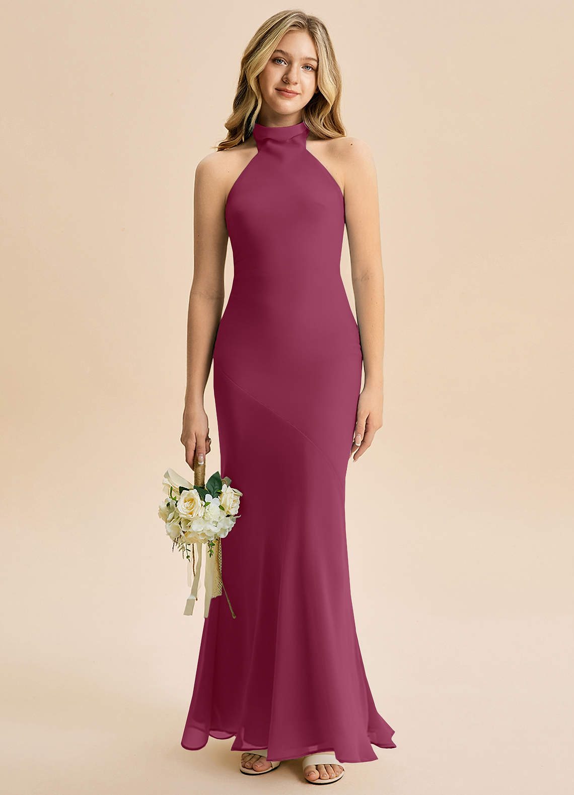 Meerjungfrau-Linie Hoher Kragen Chiffon Kleid Maulbeerrot