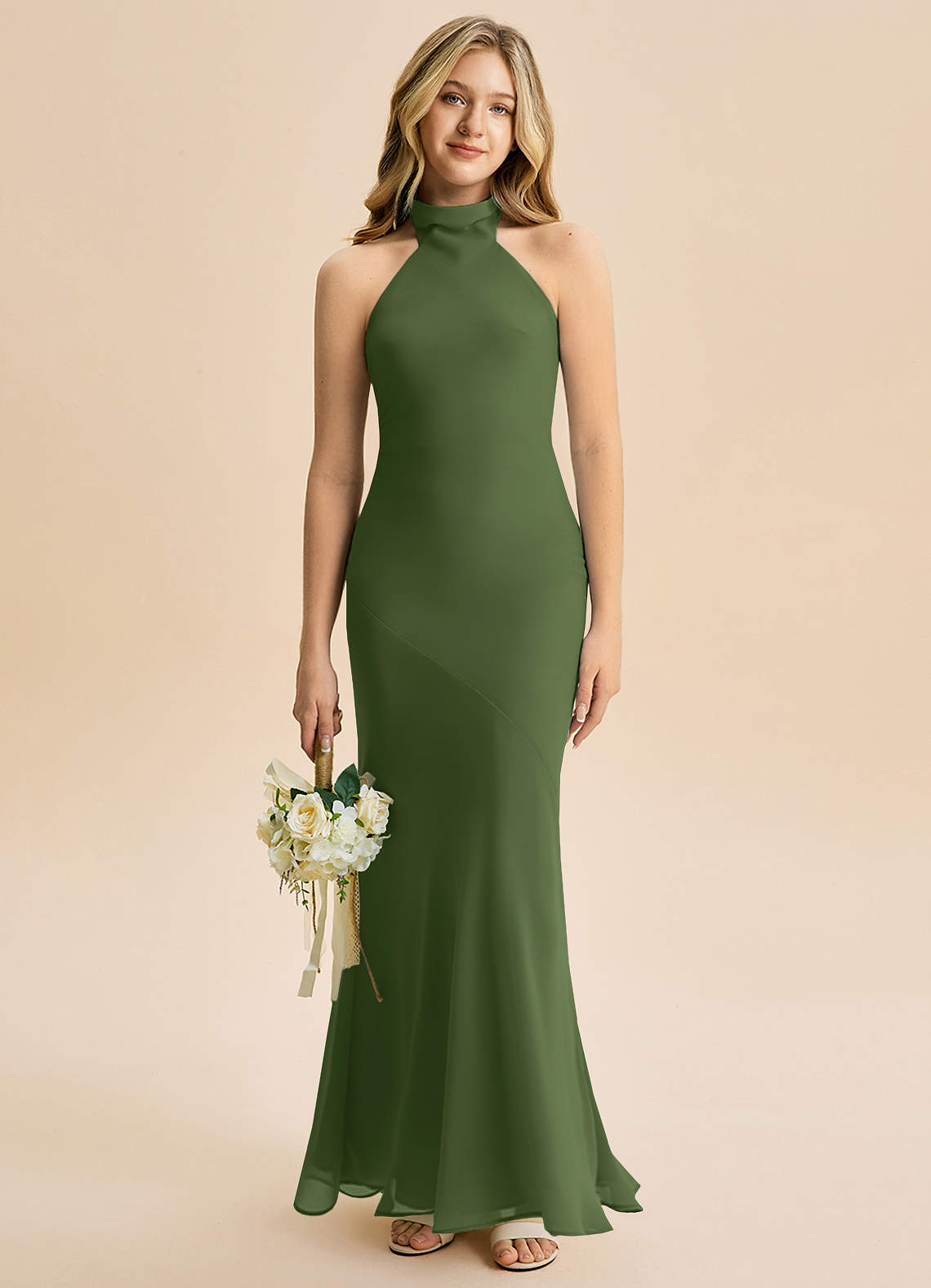 Meerjungfrau-Linie Hoher Kragen Chiffon Kleid Olivgrün