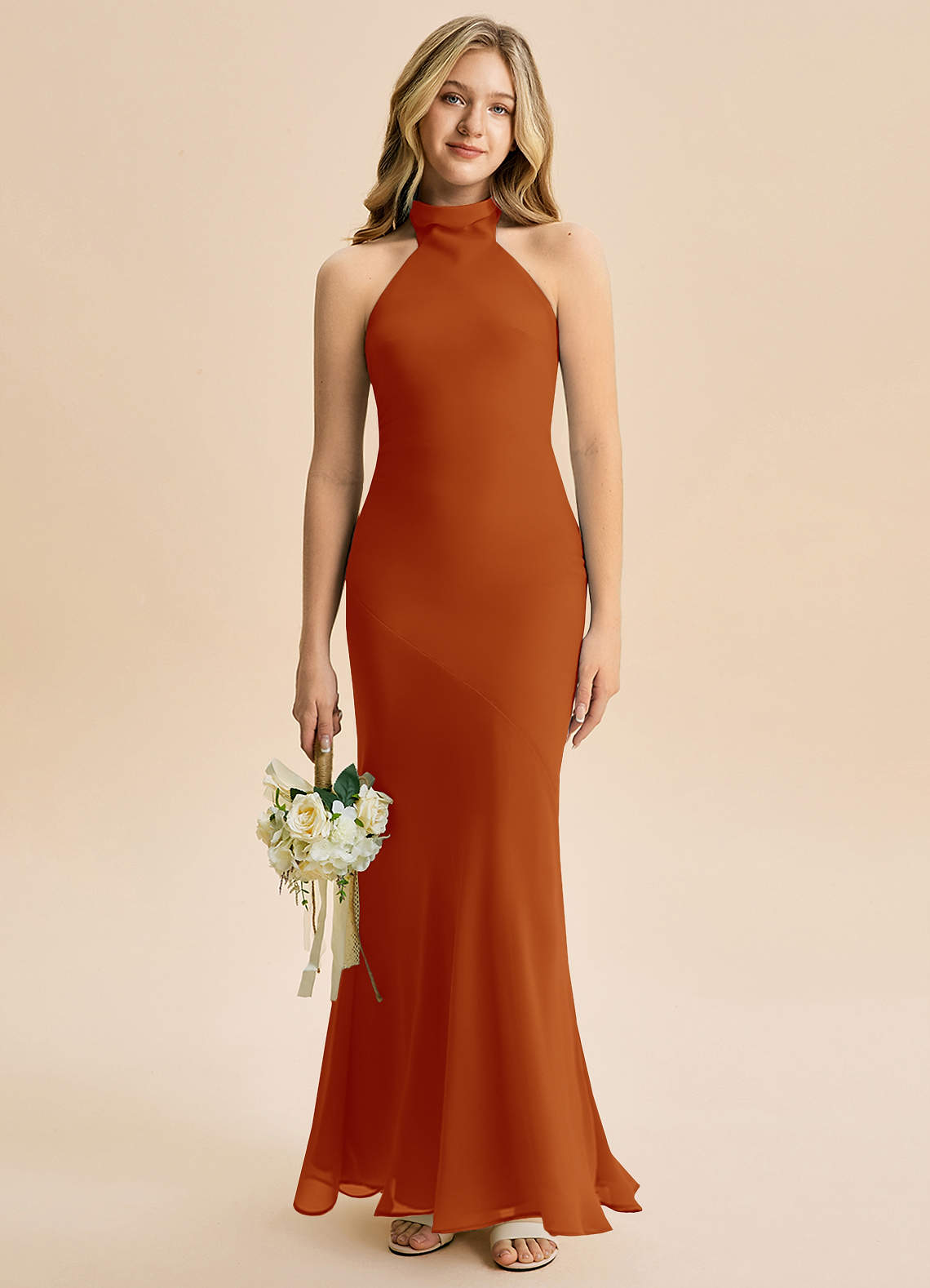 Meerjungfrau-Linie Hoher Kragen Chiffon Kleid Paprika