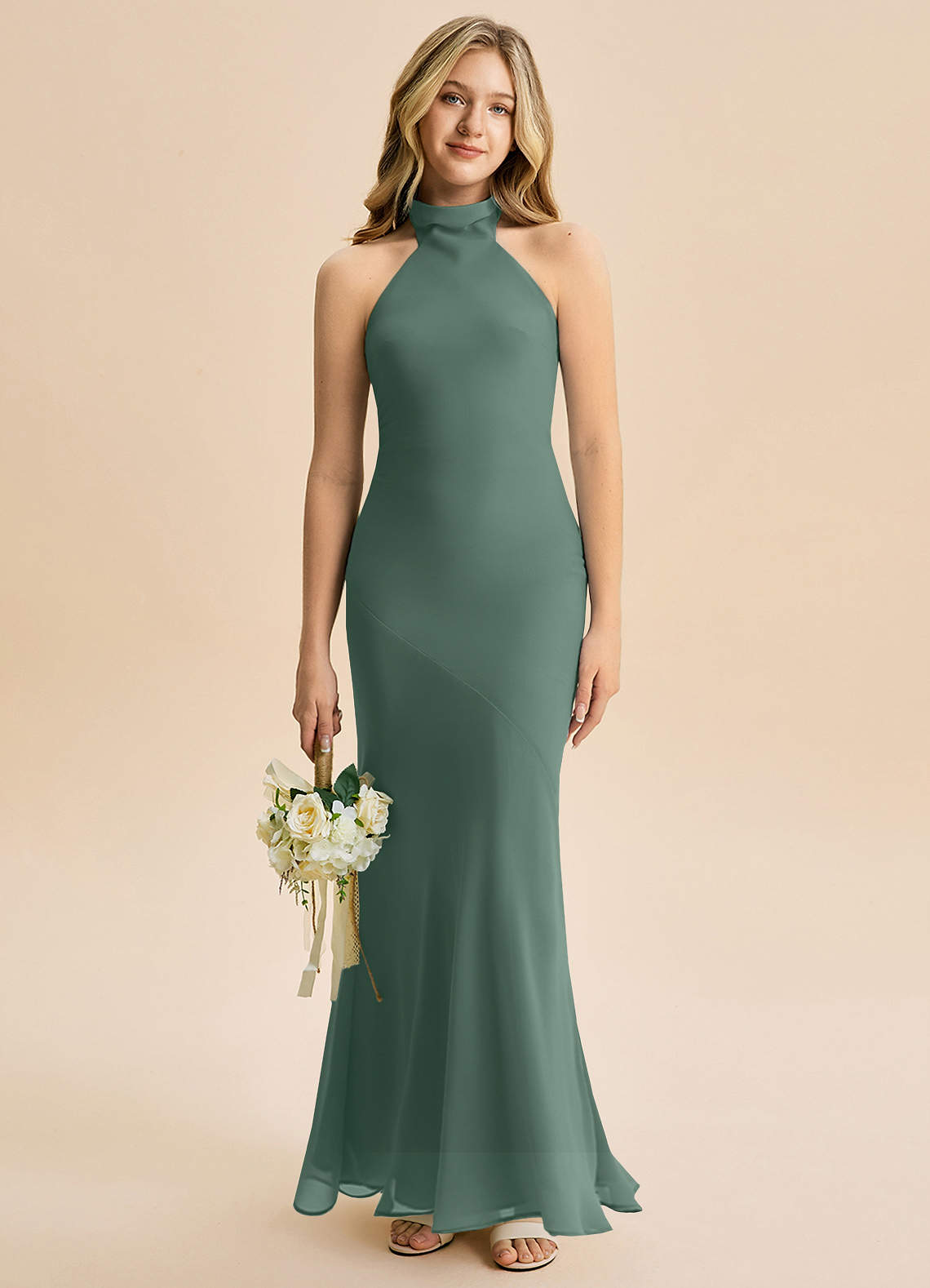 Meerjungfrau-Linie Hoher Kragen Chiffon Kleid Seemoos