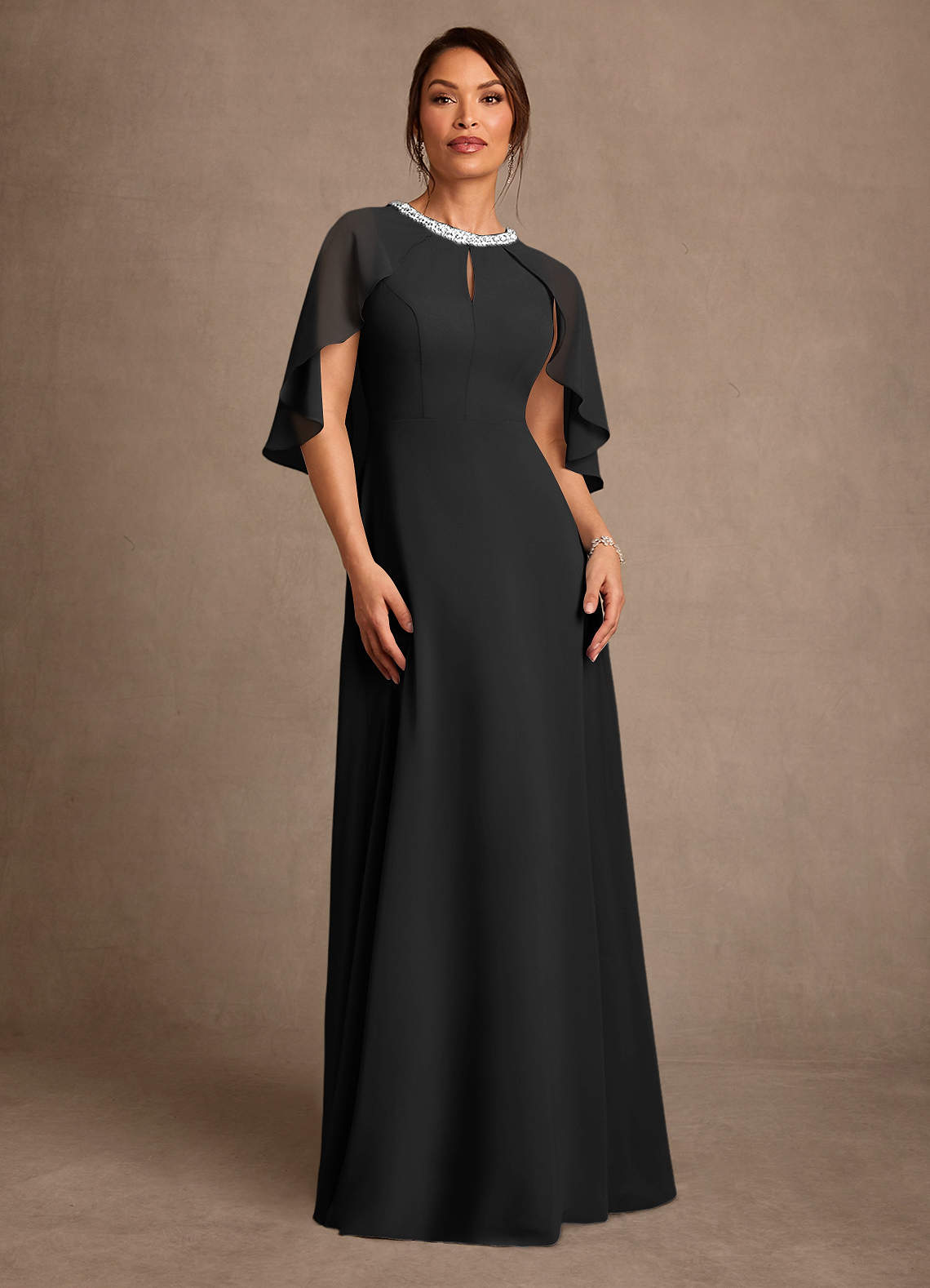 A-Linie Mit Perlen Chiffon Kleid Schwarz