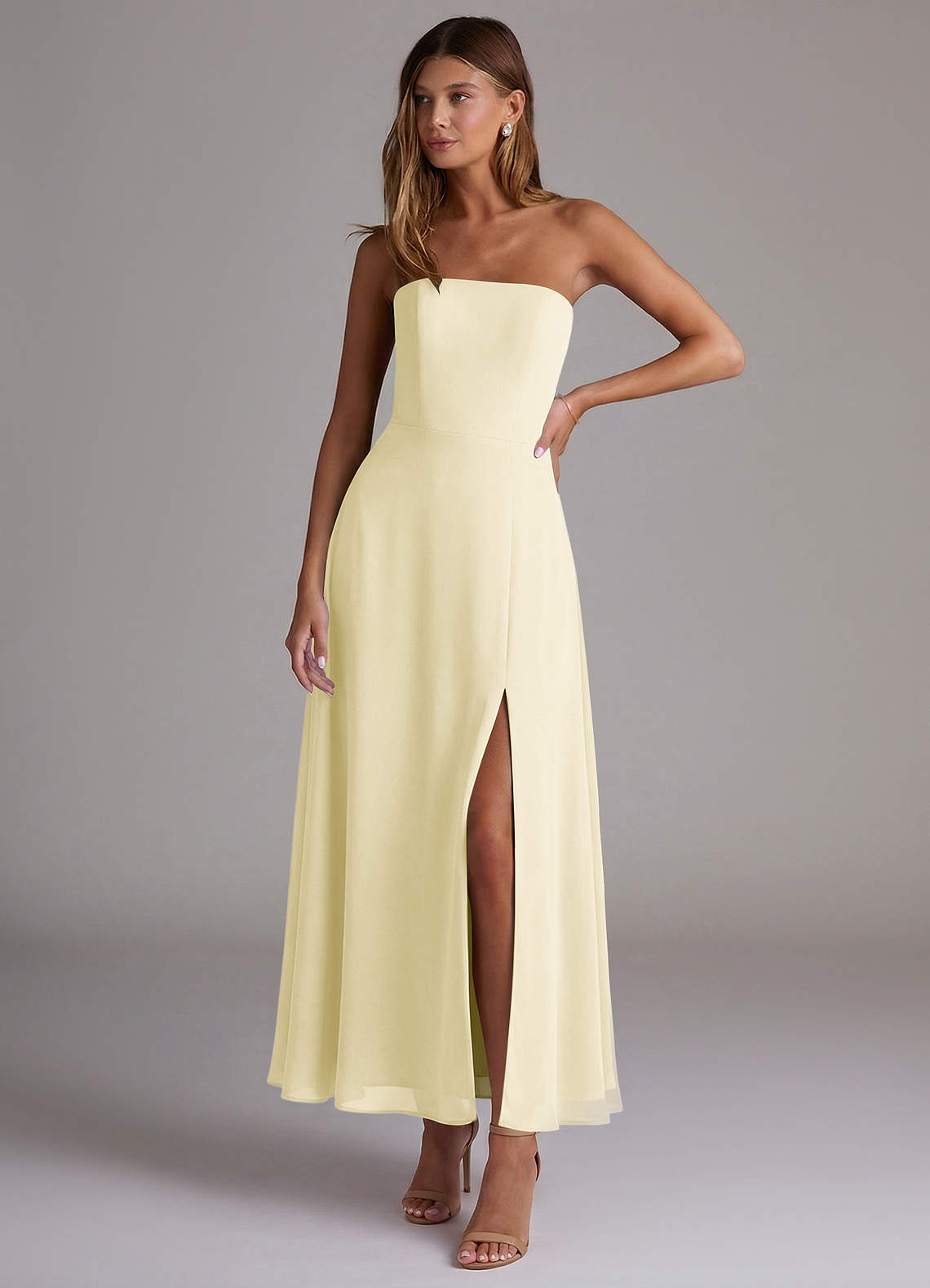 A-Linie Schulterfrei Chiffon Kleid Zitronensorbet