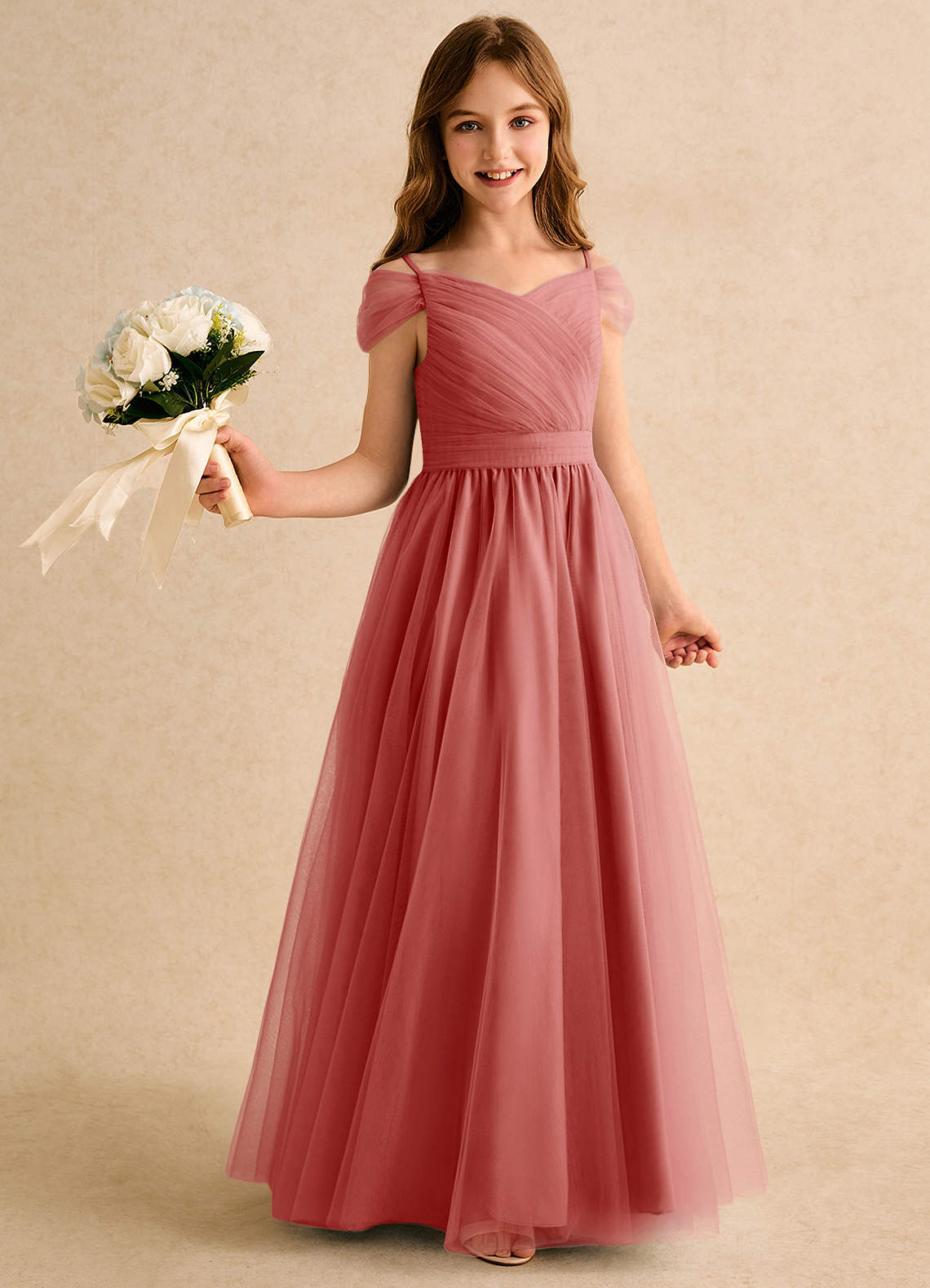 A-Linie Schulterfrei Tüll Kleid Antike Rose