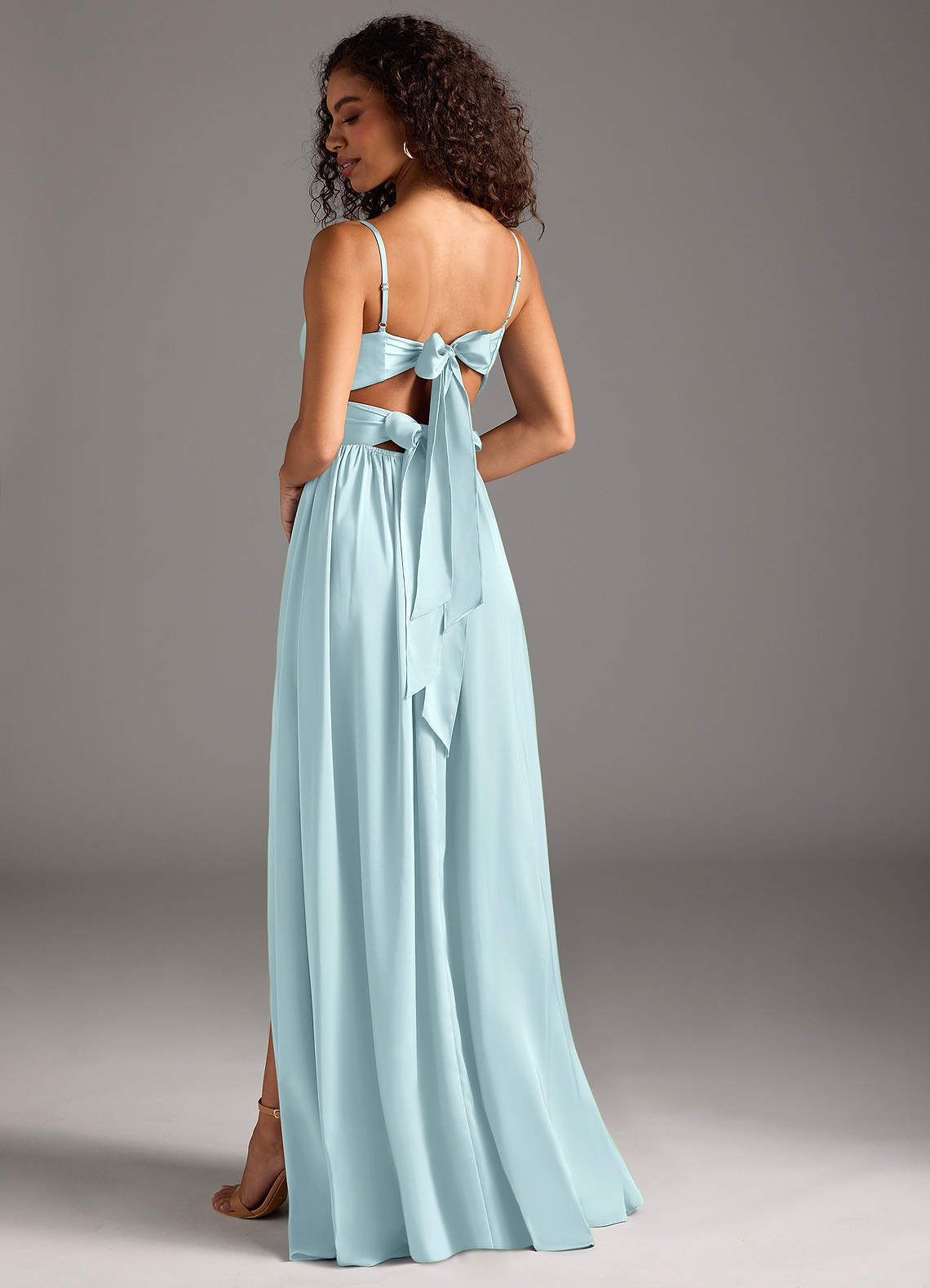 A-Linie Plissee Stretch-Satin Kleid Wolke Blau