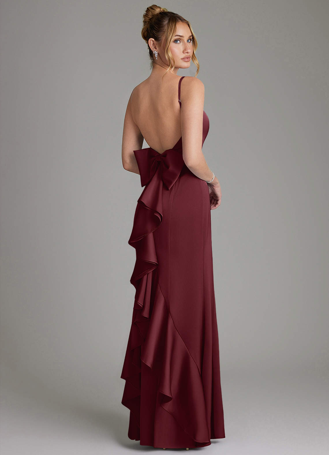 Meerjungfrau-Linie Schleifen Stretch-Satin Kleid Cabernetrot