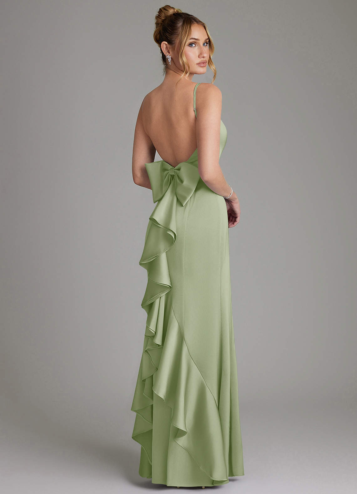 Meerjungfrau-Linie Schleifen Stretch-Satin Kleid Staubiger Salbeigrün
