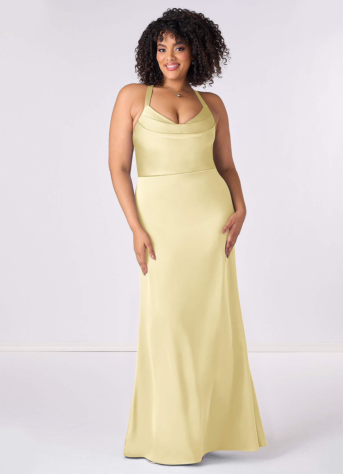 Meerjungfrau-Linie Plissee Stretch-Satin Kleid Zitronensorbet Zitronensorbet