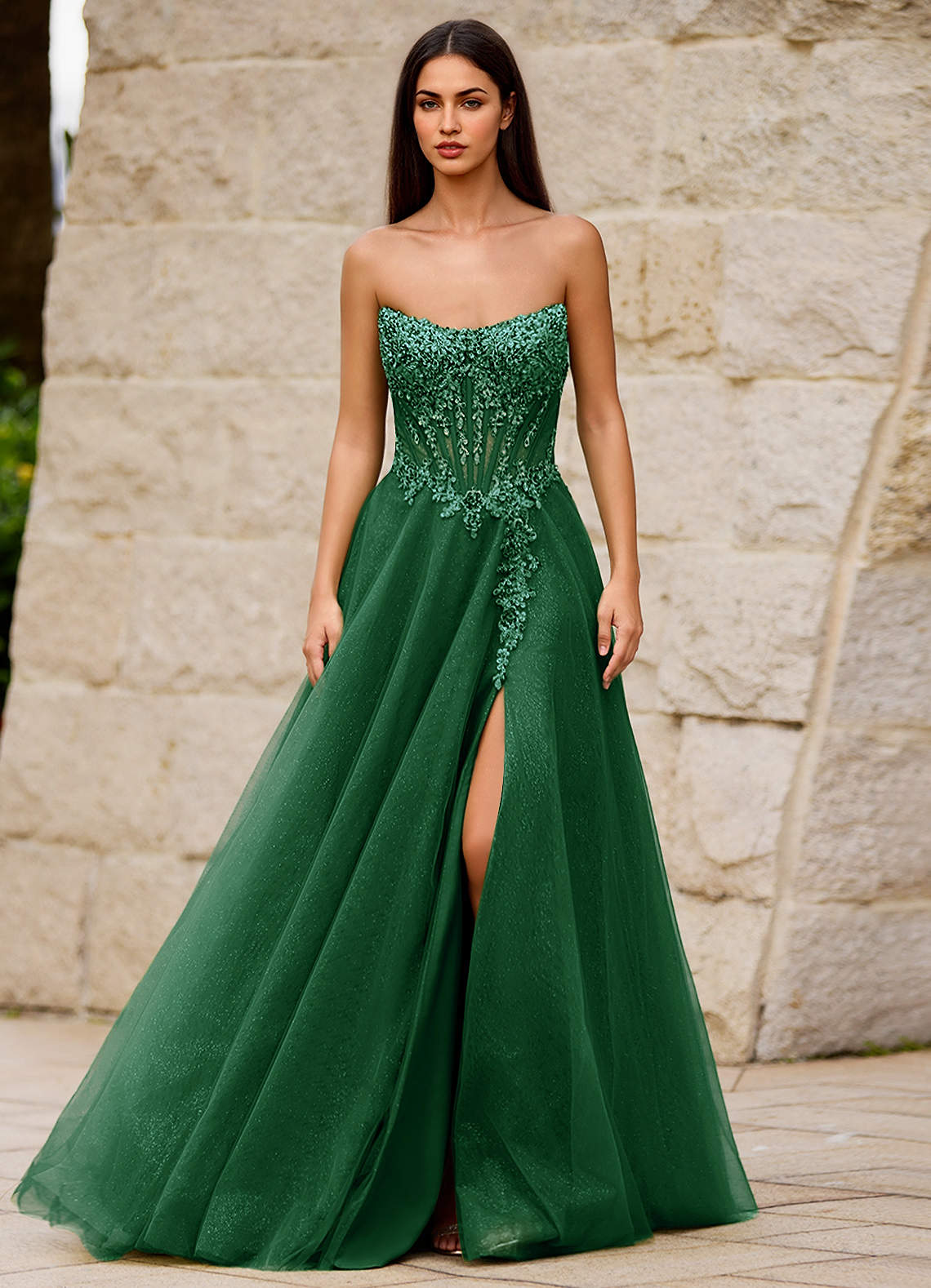 Brilliance Dunkelgrün Glitzerndes Ballkleid