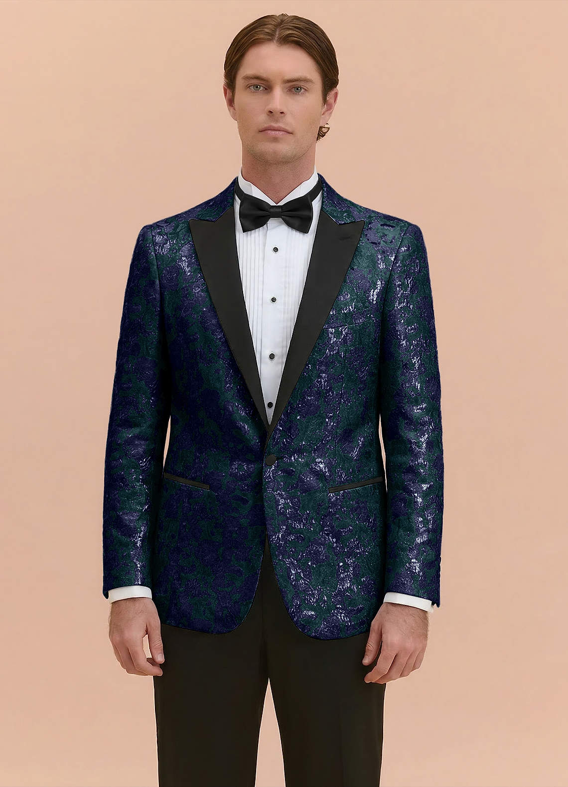 Joseph Dunkelmarine Formelles Jacquard-Smokingjackett mit spitzem Revers