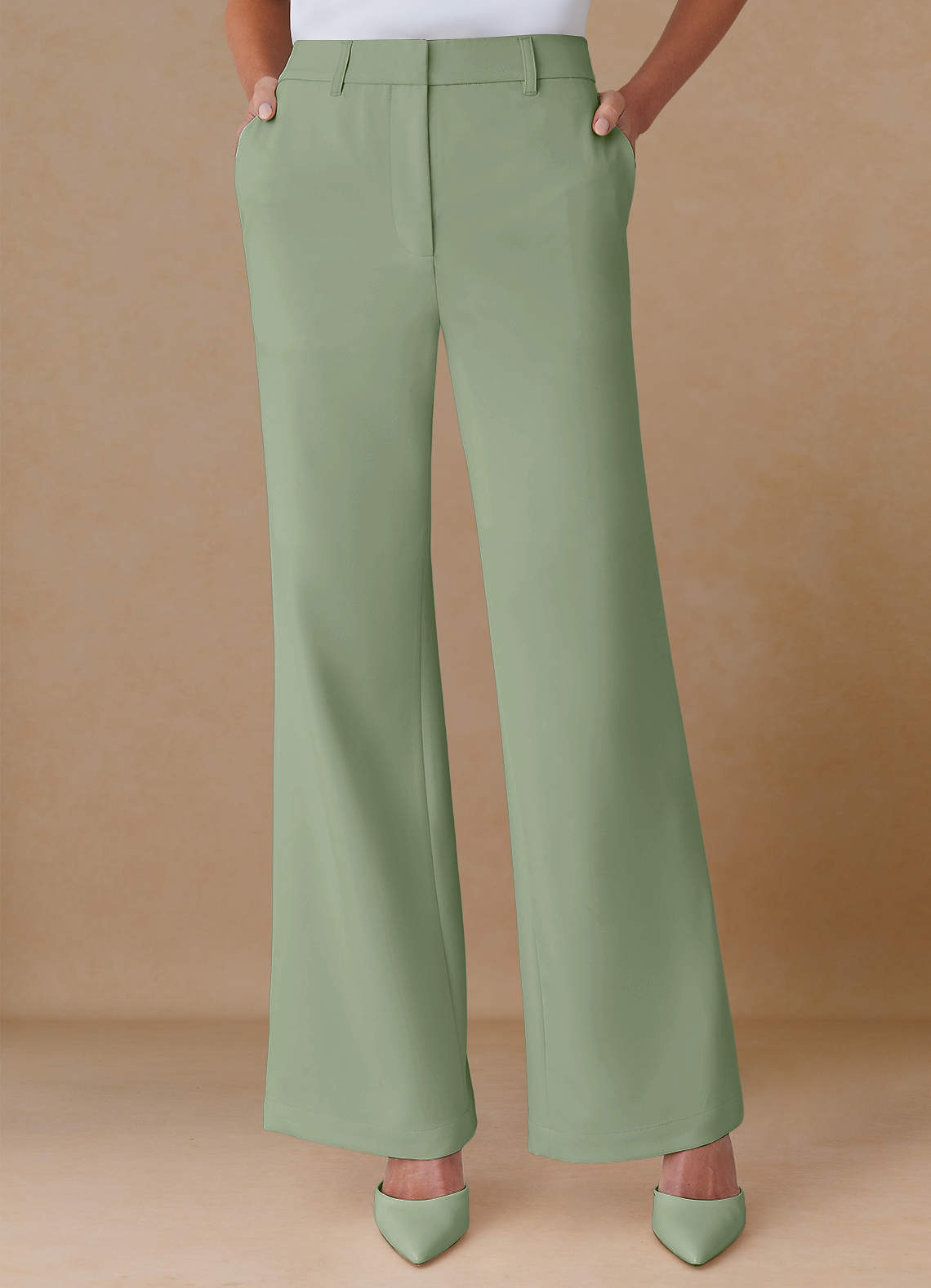 Marina Staubiger Salbeigrün Hose mit geradem Bein und feinem Webmuster