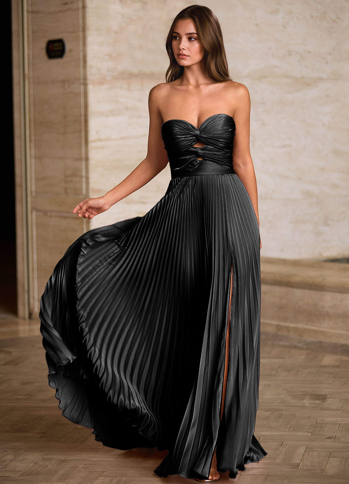 Ylura Schwarz A-Linien-Plissee-Abendkleid