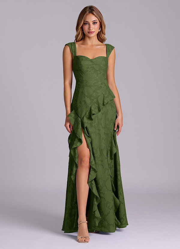 Named after the natural luminescence of unripe olives, Olive is a classic color in every context. A flattering shade, Olive is a dark green color with yellow under tones, and best suits bridesmaids with pink under tones in their skin. Olive pairs beautifully with gold accessories to bring out its golden under tones and is especially ideal for bridesmaid dresses with structure.