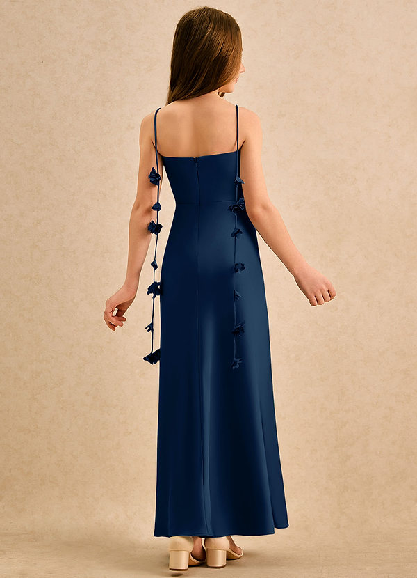Dark Navy A-Line Beaded Stretch Satin Dress