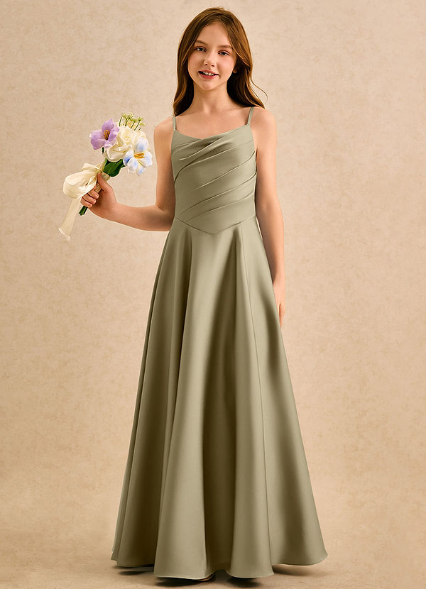 Moss Green A-Line Pleated Matte Satin Dress