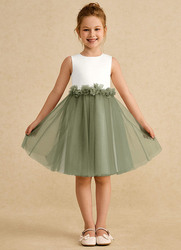 Ivory Pistachio A-Line Sleeveless Tulle Dress