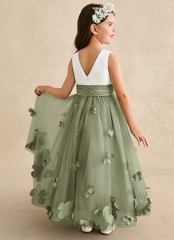 Ivory Pistachio Ball-Gown Pleated Matte Satin Dress