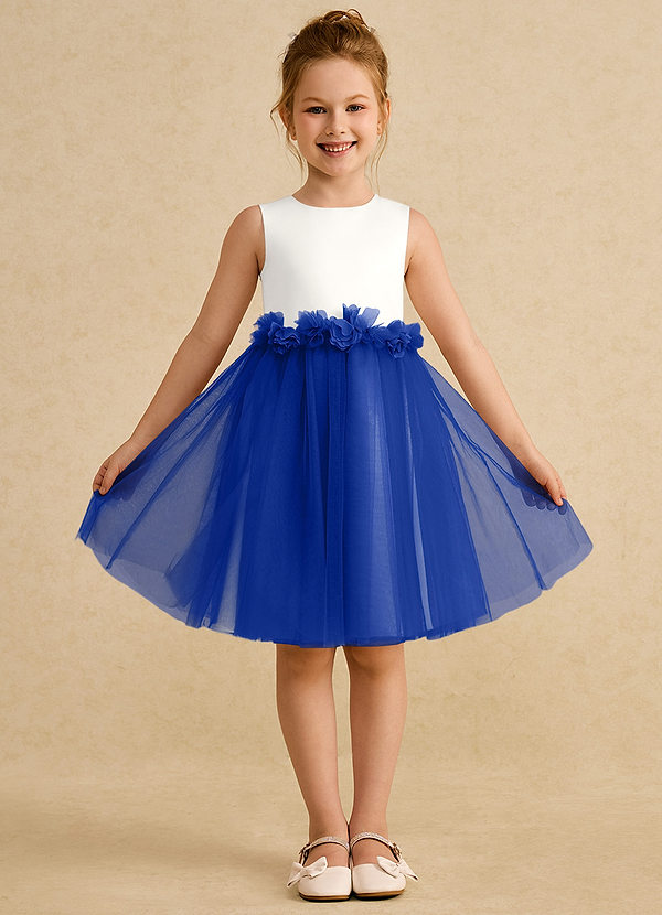 Ivory Royal Blue A-Line Sleeveless Tulle Dress