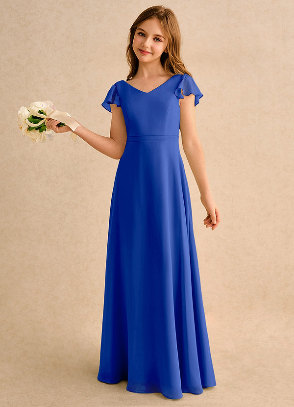 Royal Blue A-Line with Sleeves Chiffon Dress
