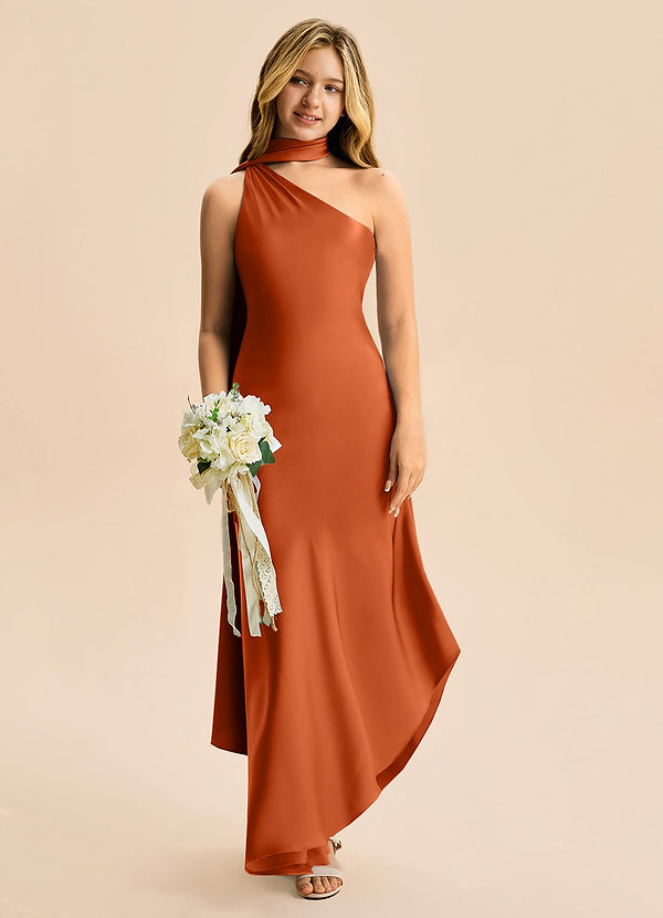 Burnt Orange A-Line Off the Shoulder Stretch Satin Dress