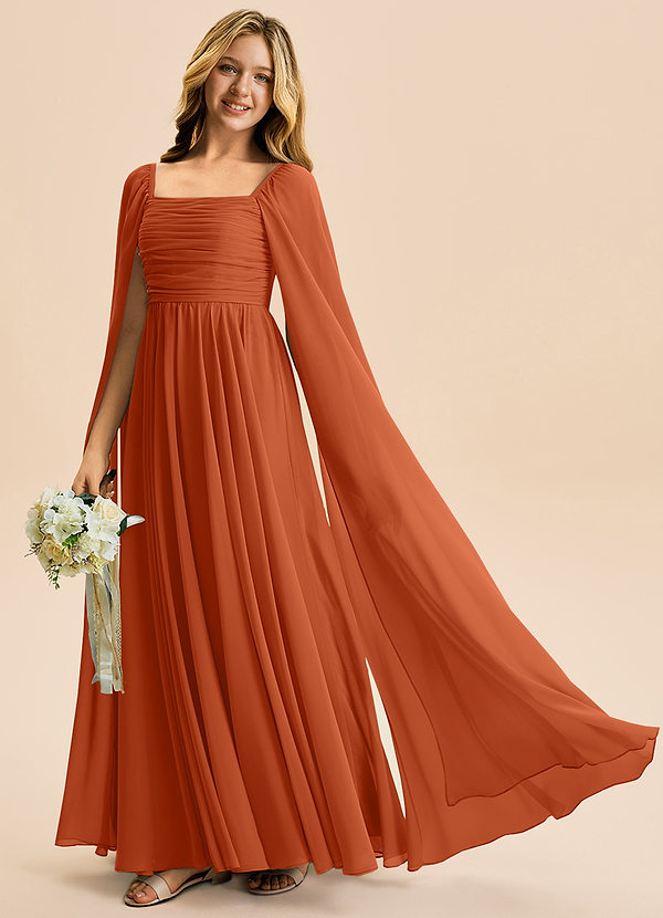 Burnt Orange A-Line Pleated Chiffon Dress