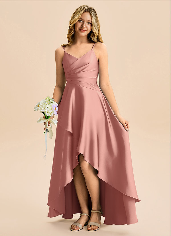 Rosette A-Line Pleated Stretch Satin Dress