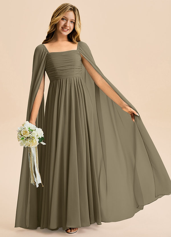 Willow Green A-Line Off the Shoulder Chiffon Dress
