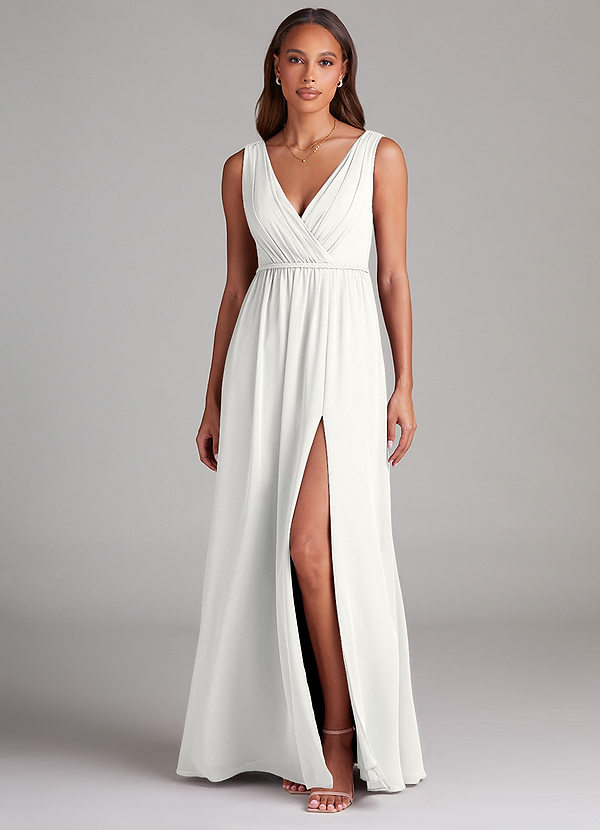 White A-Line V-Neck Long Sleeve Chiffon Dress
