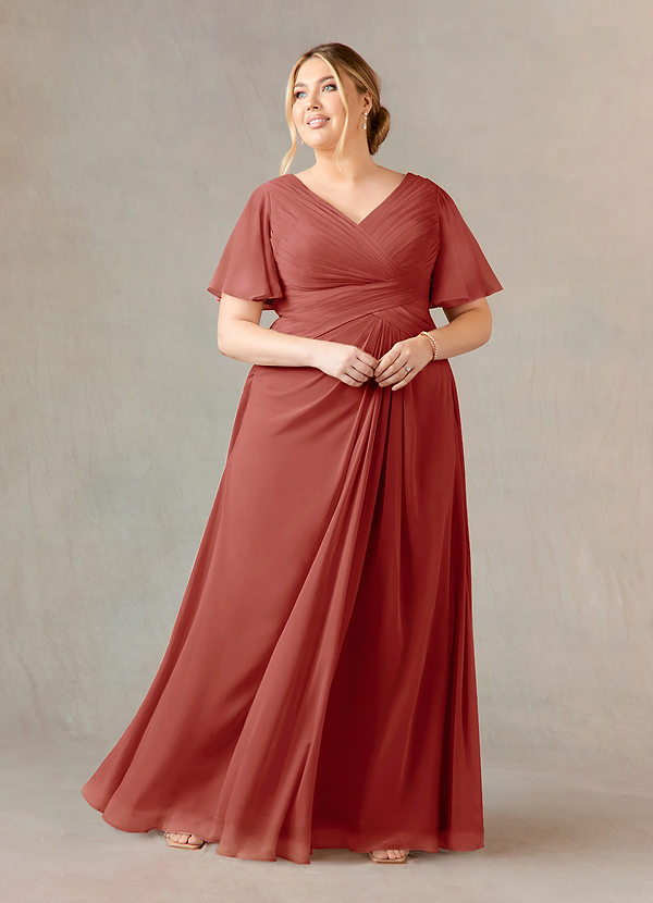 Terracotta A-Line V-Neck Pleated Chiffon Dress