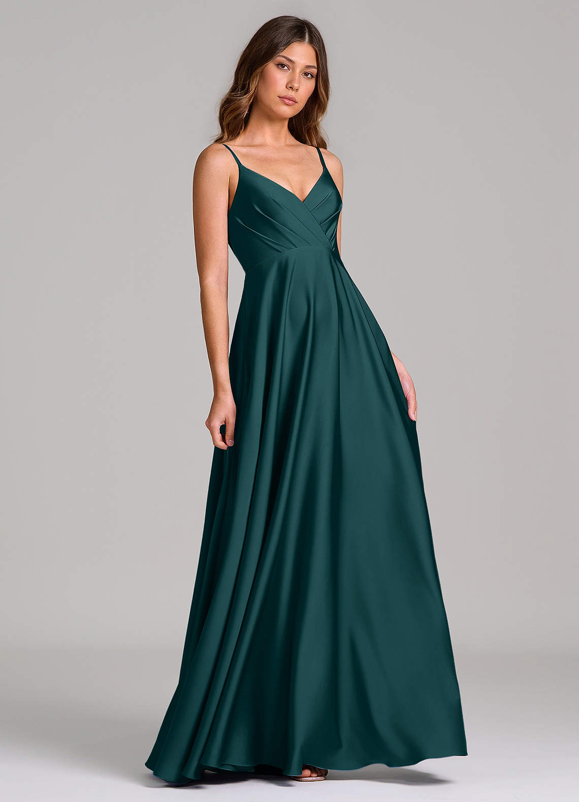 Pine A-Line Pleated Stretch Satin Dress