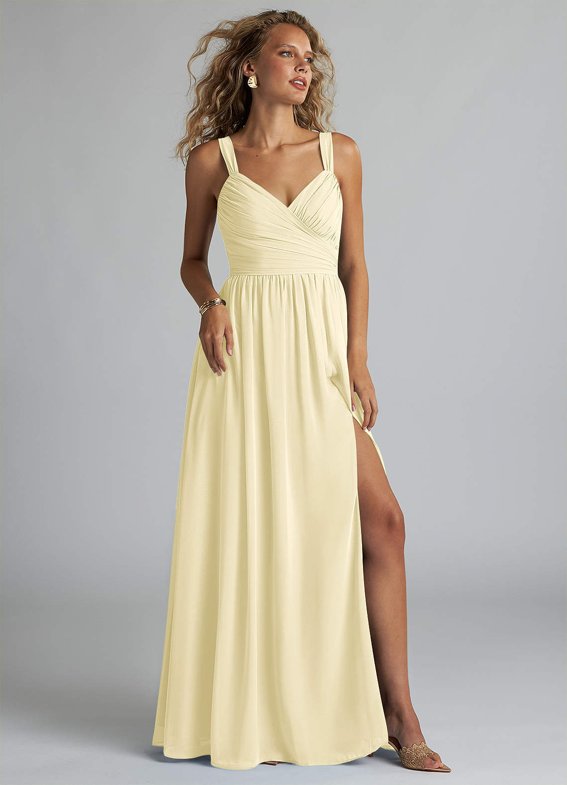 Lemon Sorbet A-Line V-Neck Pleated Chiffon Dress