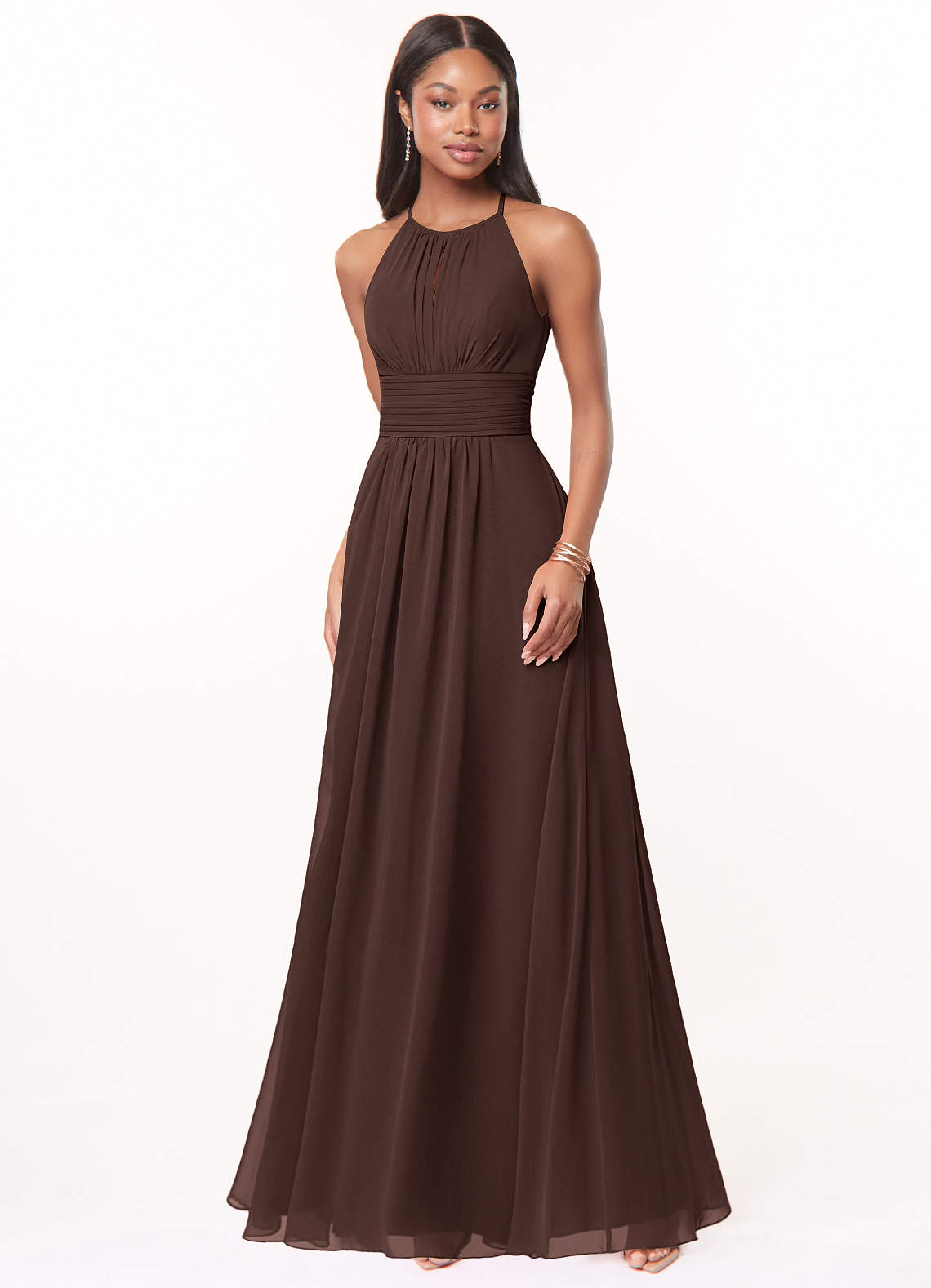 Ganache A-Line Keyhole Ruched Chiffon Dress