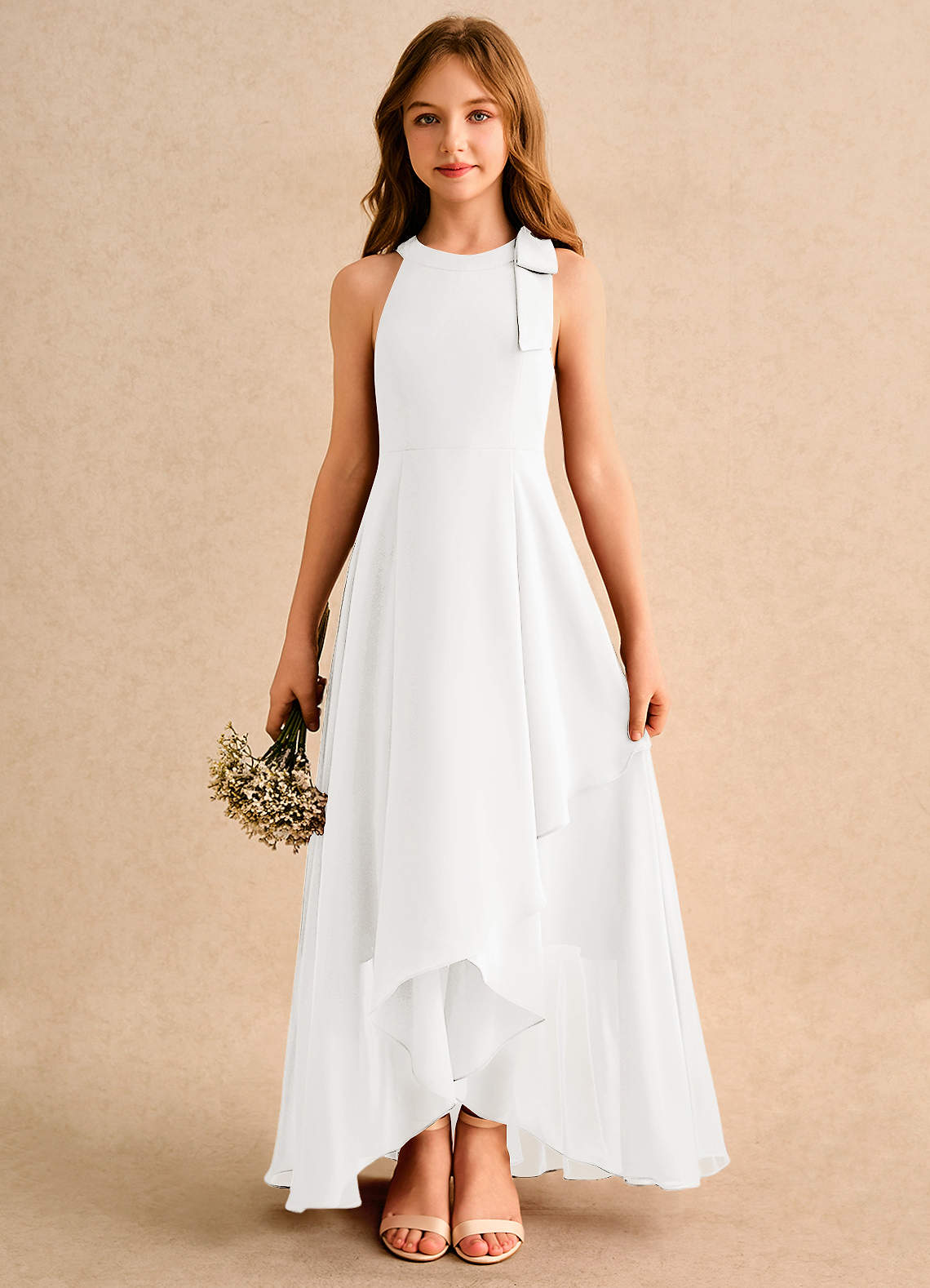 Ivory A-Line Bow Chiffon Dress