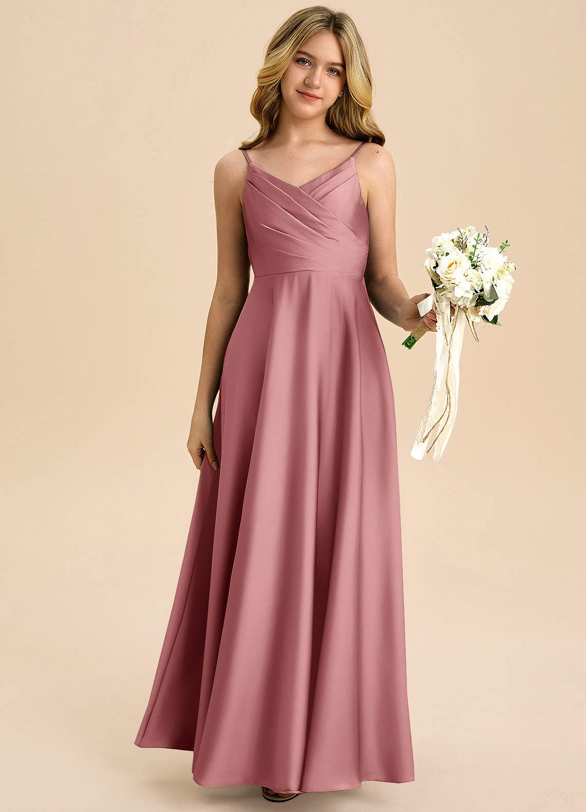 Dusty Rose A-Line Pleated Stretch Satin Dress